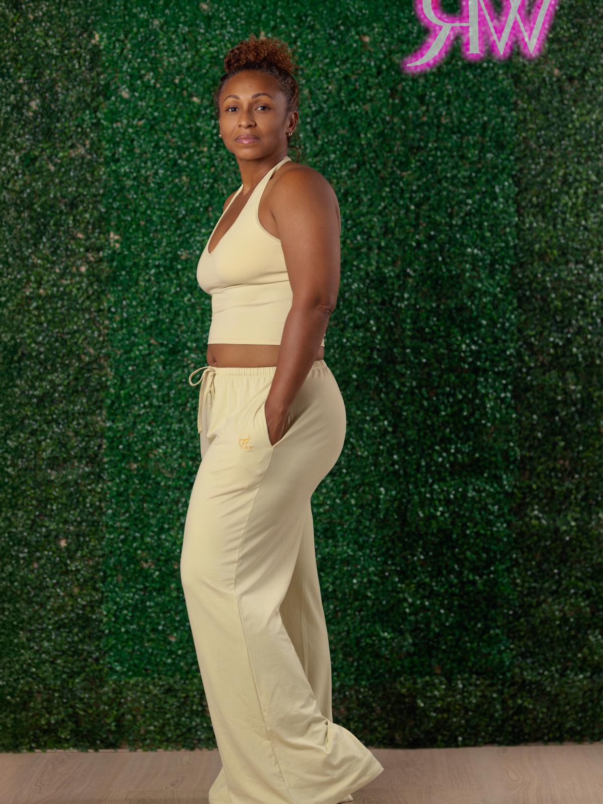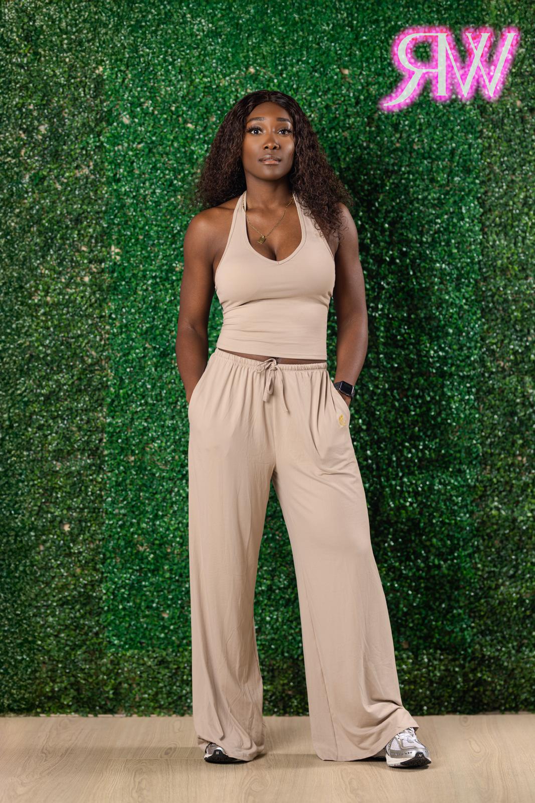 Fabric Composition: 90% Polyester, 10% Elastane This blend offers a soft, stretchy feel with excellent durability and comfort—perfect for everyday wear or lounging in style.